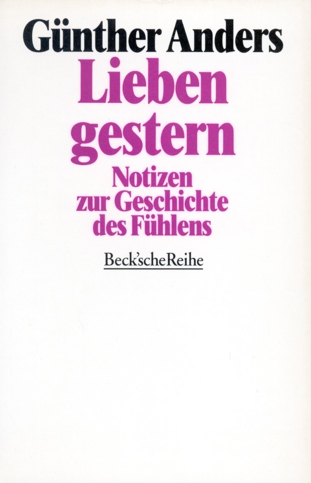 Das gilt auch für die hier vorgelegten Stücke seines New Yorker Tagebuches der Jahre 1947 - 1949, auch wenn nun Gefühle, die seinen und die seiner Schicksalsgefährten, Hauptgegenstand der Darstellung sind, und zwar einer geschichtlichen Darstellung. Nichts wäre in der Tat naiver als zu glauben, Gefühle blieben konstant (während Ideen sich ständig änderten), z. B. Liebe sei heute dasselbe Gefühl wie etwa im Athen des Perikles oder in der Goethezeit. Ein knappes Jahrzehnt nach diesen Tagebucheintragungen hat Anders im ersten Band seiner "Antiquiertheit des Menschen" eine Geschichte des Fühlens als ein Desiderat bezeichnet. Die hier vorgelegte Darstellung ist ein Beispiel für ein solches historisches Gefühlsporträt.