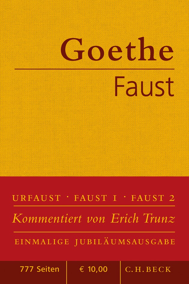 Die Ausgabe bietet den Text des »Faust« (»Der Tragödie erster Teil«, »Der Tragödie zweiter Teil«) und des »Urfaust«. Der 350 Seiten umfassende Kommentarteil enthält Äußerungen über den »Faust« sowie Quellen zur Entstehungsgeschichte des Werkes, ein interpretierendes Nachwort des Herausgebers, bibliographische Hinweise und 250 Seiten Anmerkungen. So wird dem Leser eine gründliche Einarbeitung in die komplexe Dichtung des »Faust« möglich gemacht.
