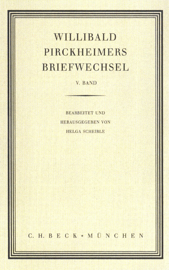 Noch im 19. Jahrhundert begann der Nürnberger Archiv- und Bibliotheksdirektor Emil Reicke aus Willibald Pirckheimers schriftlichem Nachlaß dessen Briefwechsel zusammenzustellen und chronologisch zu ordnen. 1940 erschien der erste Band, 1956 – bereits nach Reickes Tod – der zweite. Erst 1989 folgte der dritte, 1997 dann der vierte und 2001 der fünfte Band. Nun (2004) liegt der sechste vor und bis 2008 soll mit dem siebten und letzten Band die Edition abgeschlossen sein. Im Prinzip wurde am Editionsplan Reickes nichts geändert. Nur die Anmerkungen sind ab Band III deutlich knapper und stellenbezogener gehalten und die Textedition wurde anspruchsvoller und differenzierter. Die Herausgeberin Helga Scheible promovierte 1969 in Heidelberg über Die Gedichte in der Consolatio Philosophiae des Boethius. Sie trägt seit 1990 die wissenschaftliche Verantwortung für die Edition.